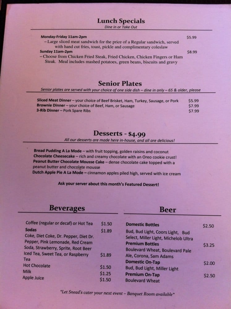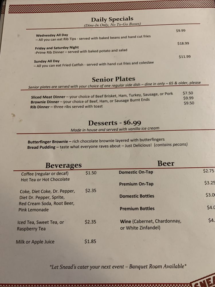 Snead's Bar-B-Q, located in Belton, MO, is a hidden gem for BBQ lovers. With a laid-back atmosphere and friendly service, this spot offers a wide variety of mouth-watering dishes. Customers rave about the tender ribs, flavorful burnt ends, and delicious sides like coleslaw and beans. The menu also includes vegetarian options for those looking for meat-free choices. The restaurant's signature dish, the rib tips platter, is a must-try and comes with generous portions of sides and a choice of sauce. The prices are reasonable, making it a great value for the quality of food served. Whether you're a longtime fan or a first-time visitor, Snead's Bar-B-Q is sure to exceed your expectations with its tasty BBQ offerings.